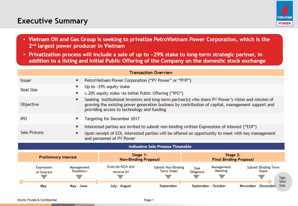 Tuesday, 08/08/2017 | 08:00 Potential Investment Opportunity Potential Investment Opportunity ; Tags: Equitization infor