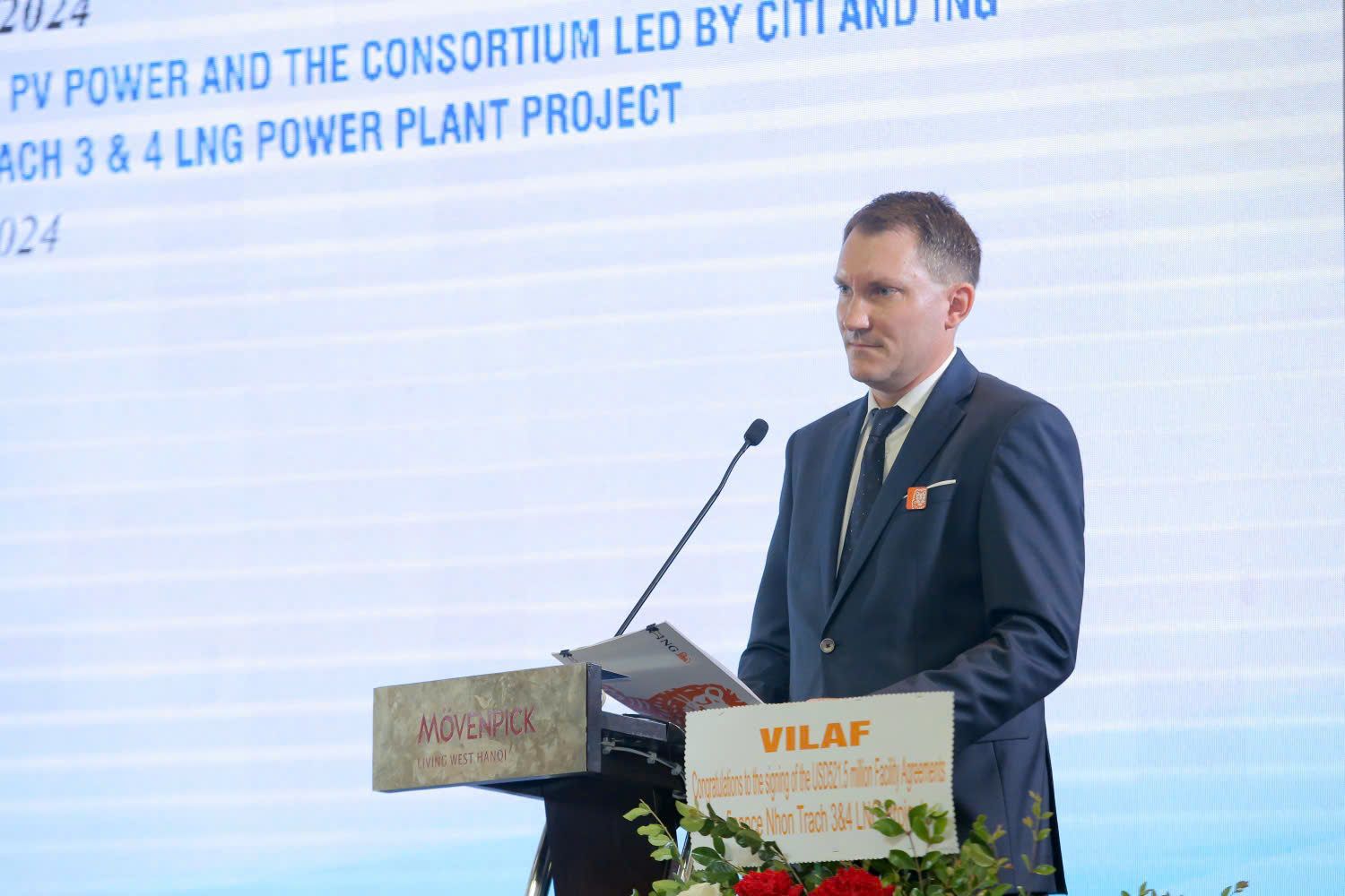 Photo: Lukas Strauch, director in the Structured Export Finance team at ING Bank, delivers a speech at the ceremony.