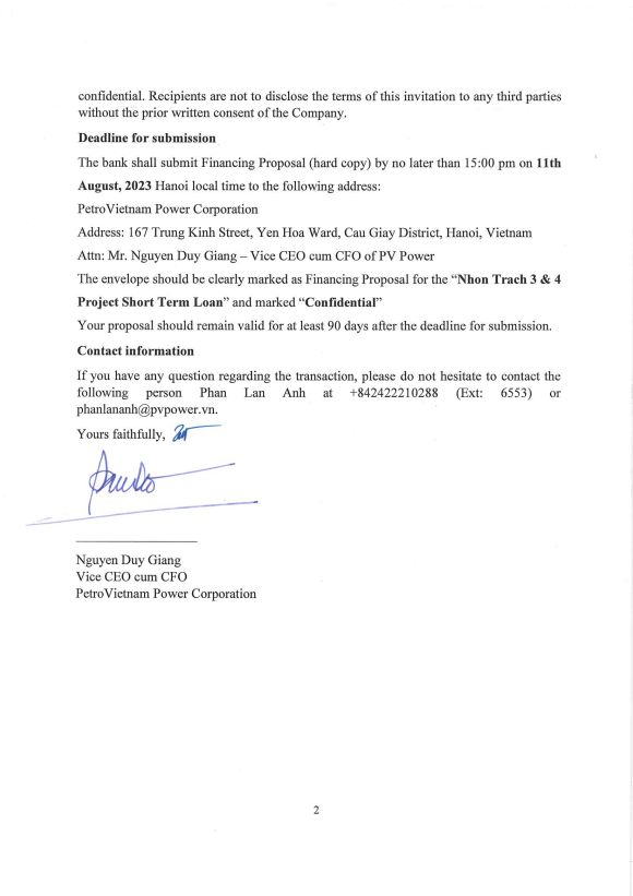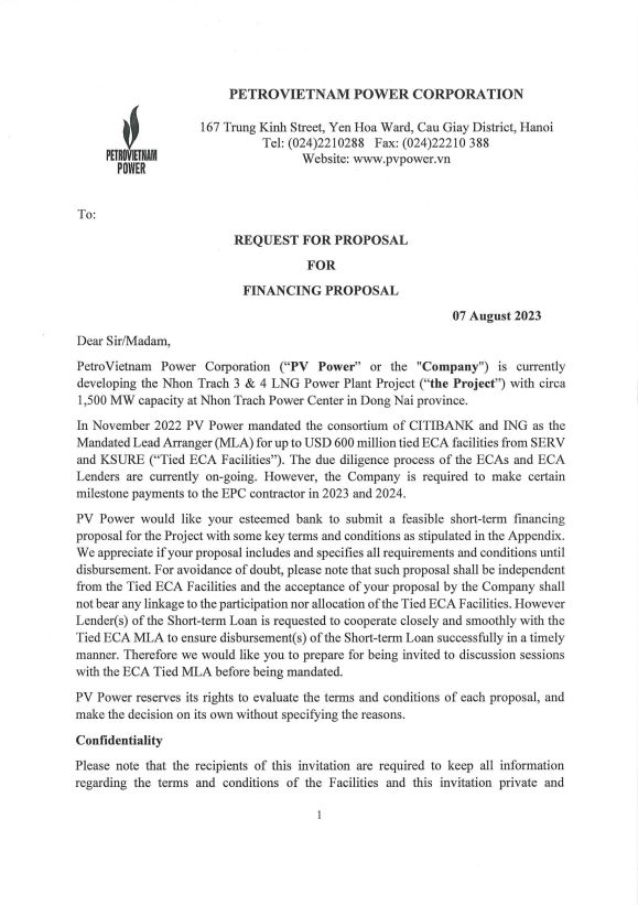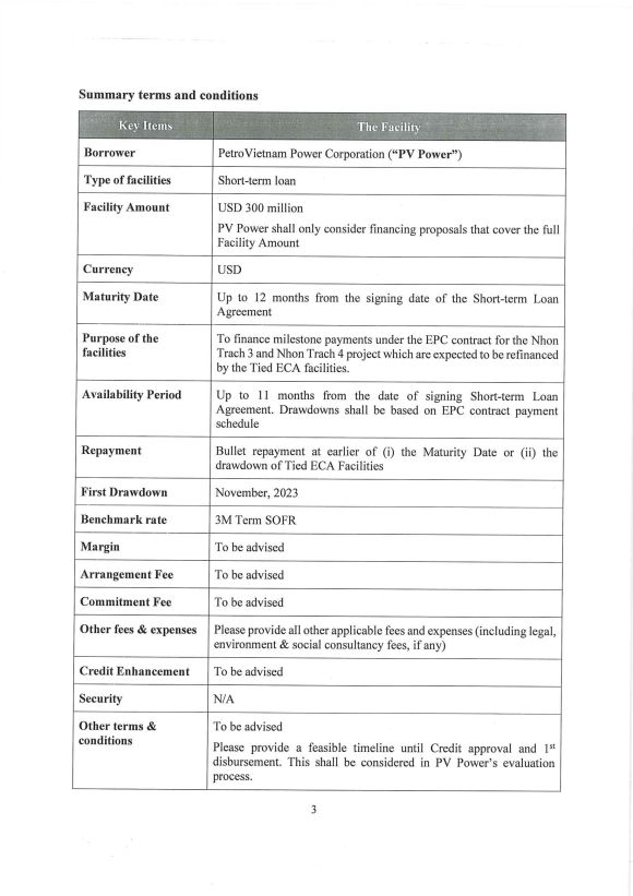 PV Power would like your esteemed bank to submit a feasible short-term financing proposal for the Project with some key terms and conditions as stipulated in the Appendix.