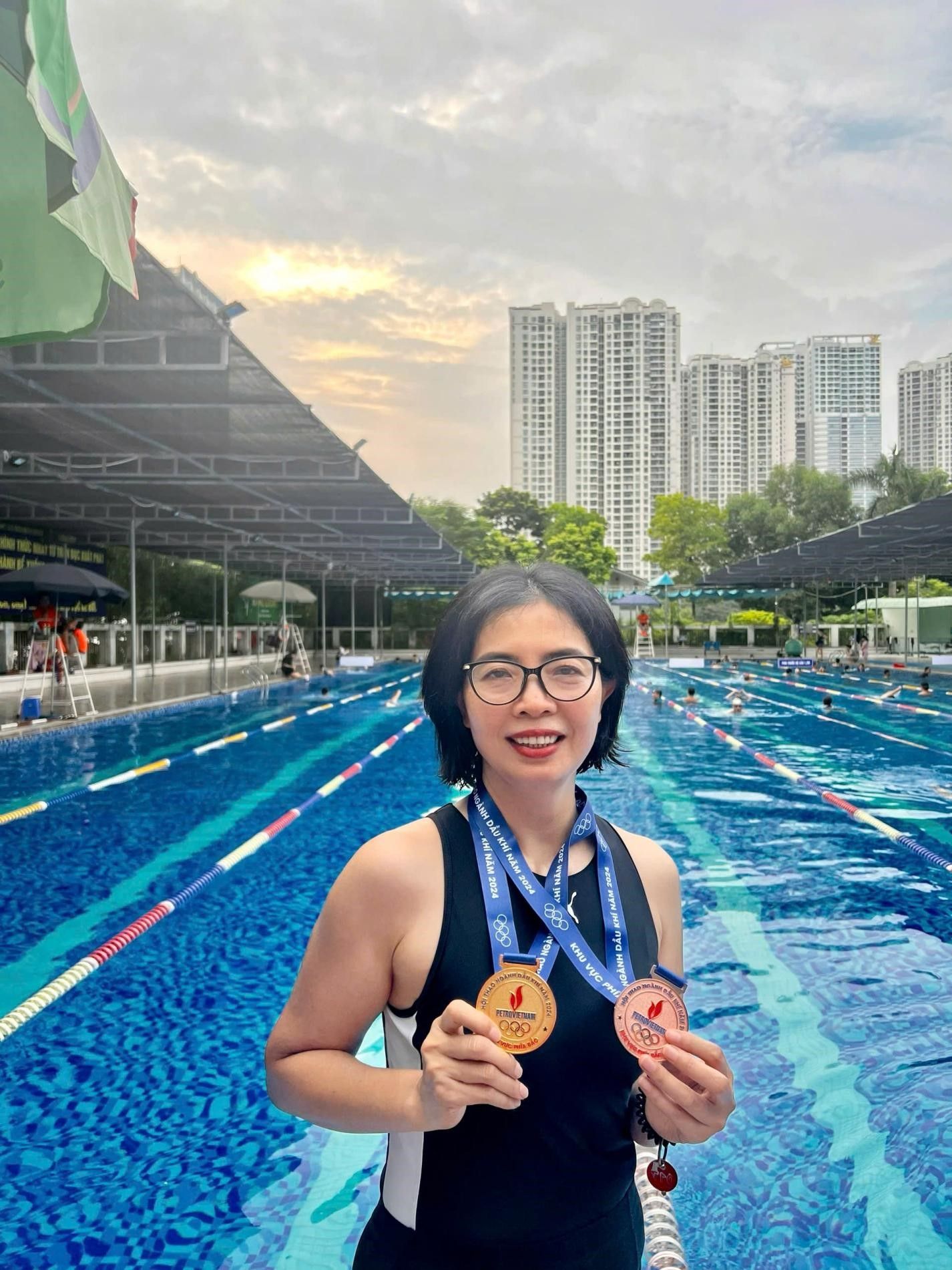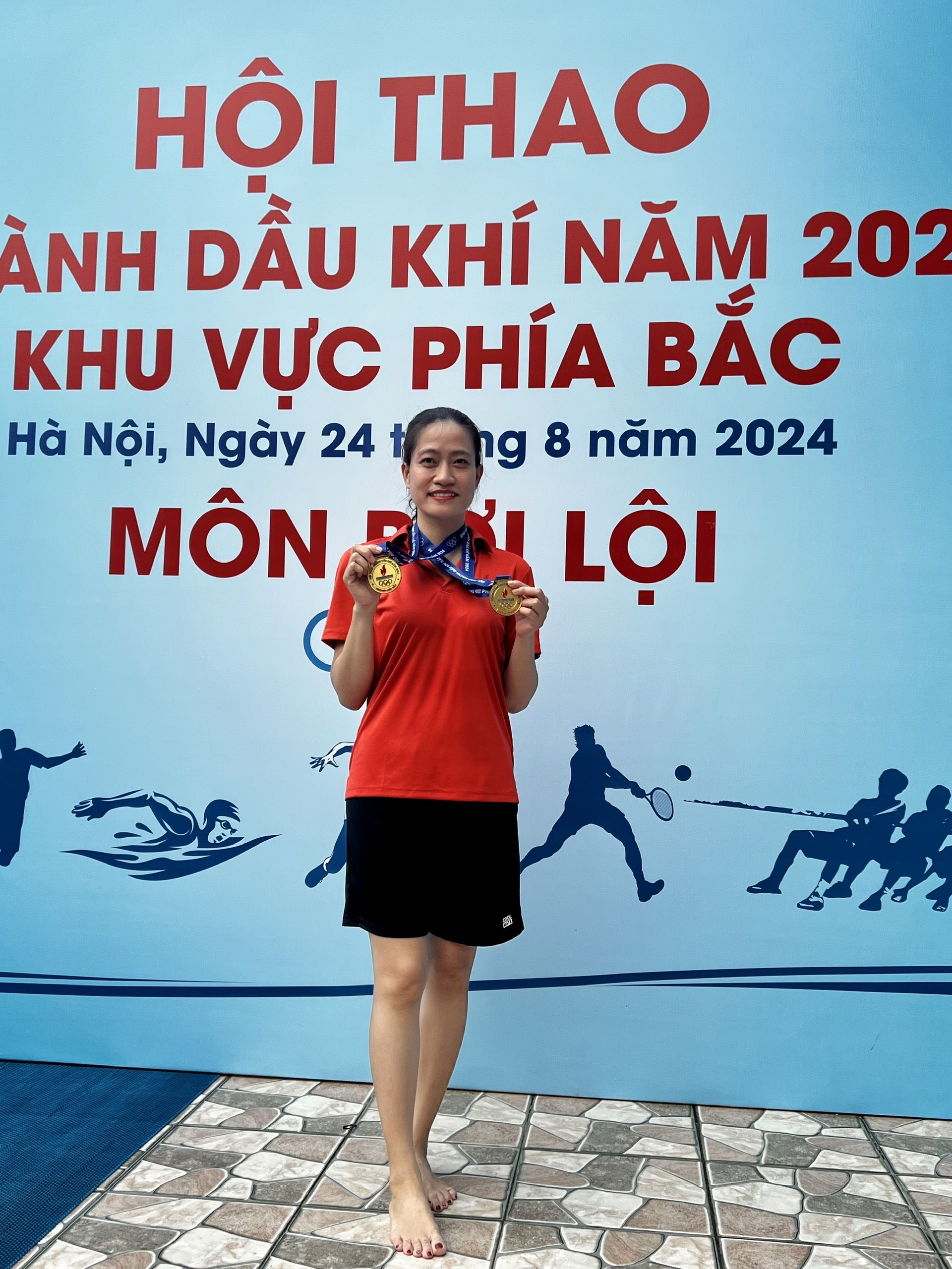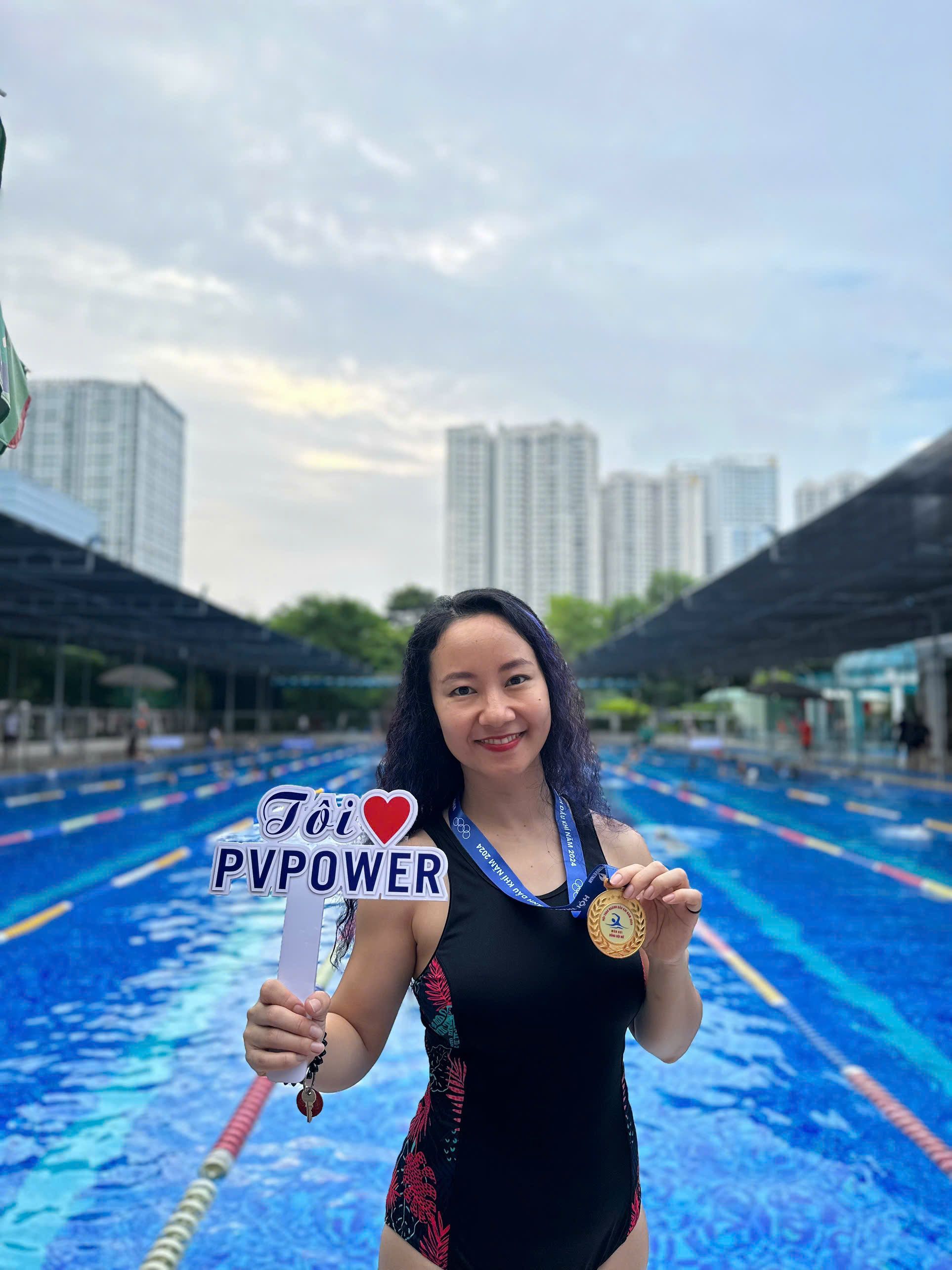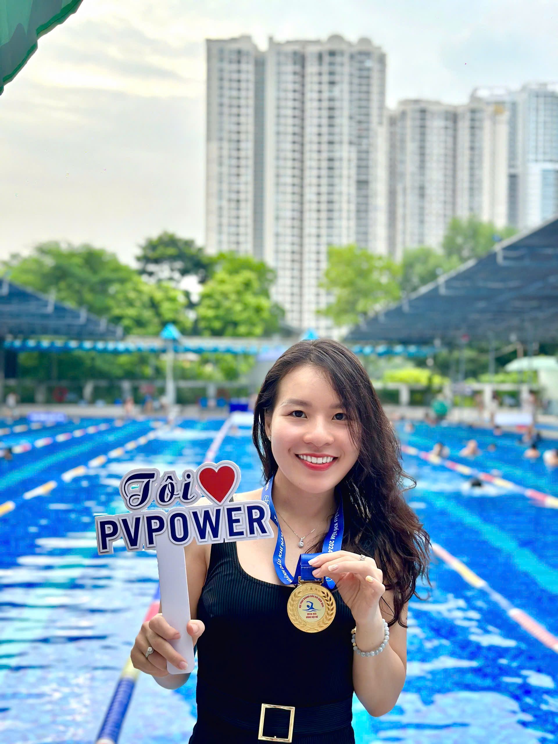 Chị Vũ Thị Tố Nga – Thành viên HĐQT, Chủ tịch CLB Bơi PV Power xuất sắc giành 01 HCV ở cự ly nữ 100 m và 01 HCĐ cự ly 50m lứa tuổi 41-50.