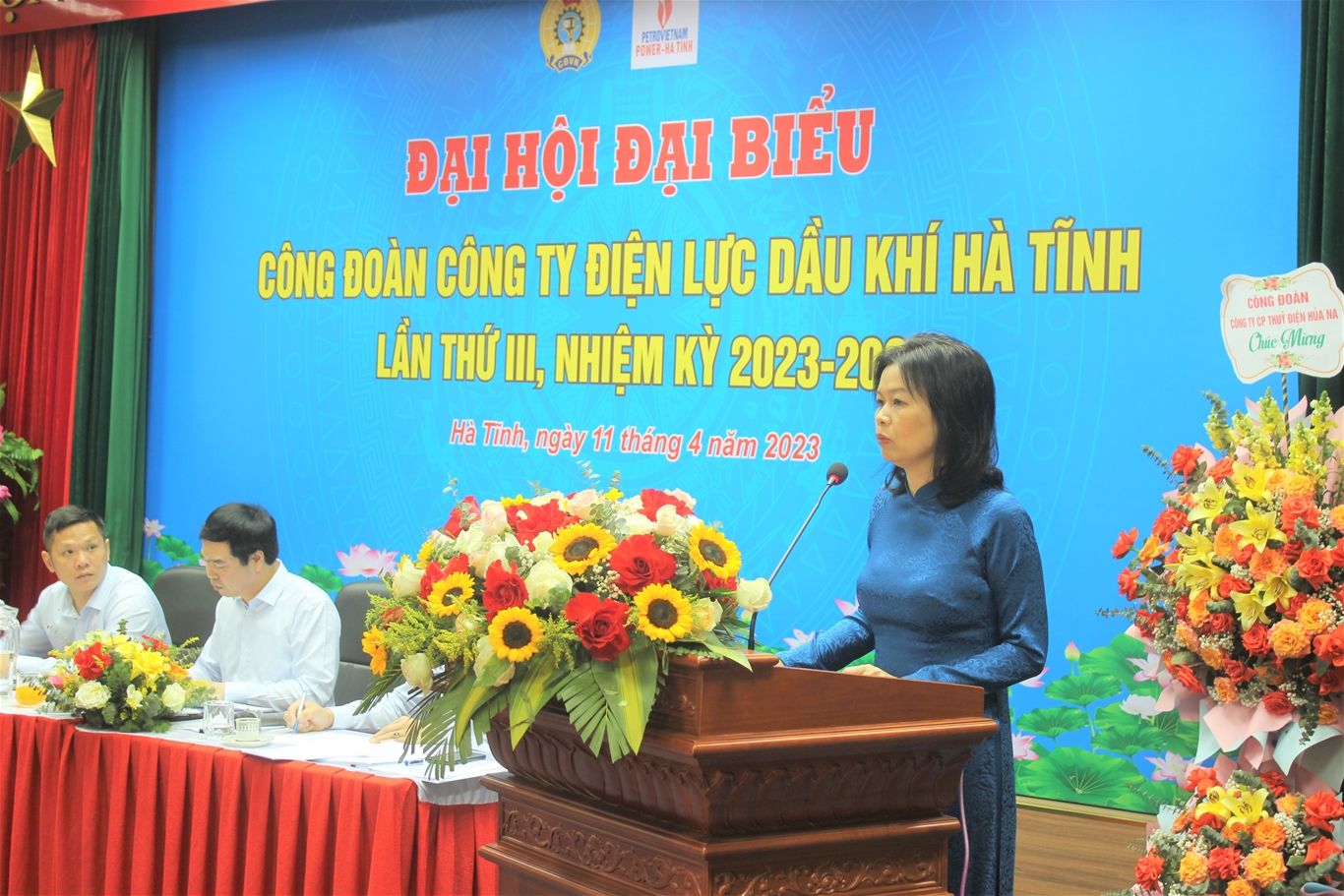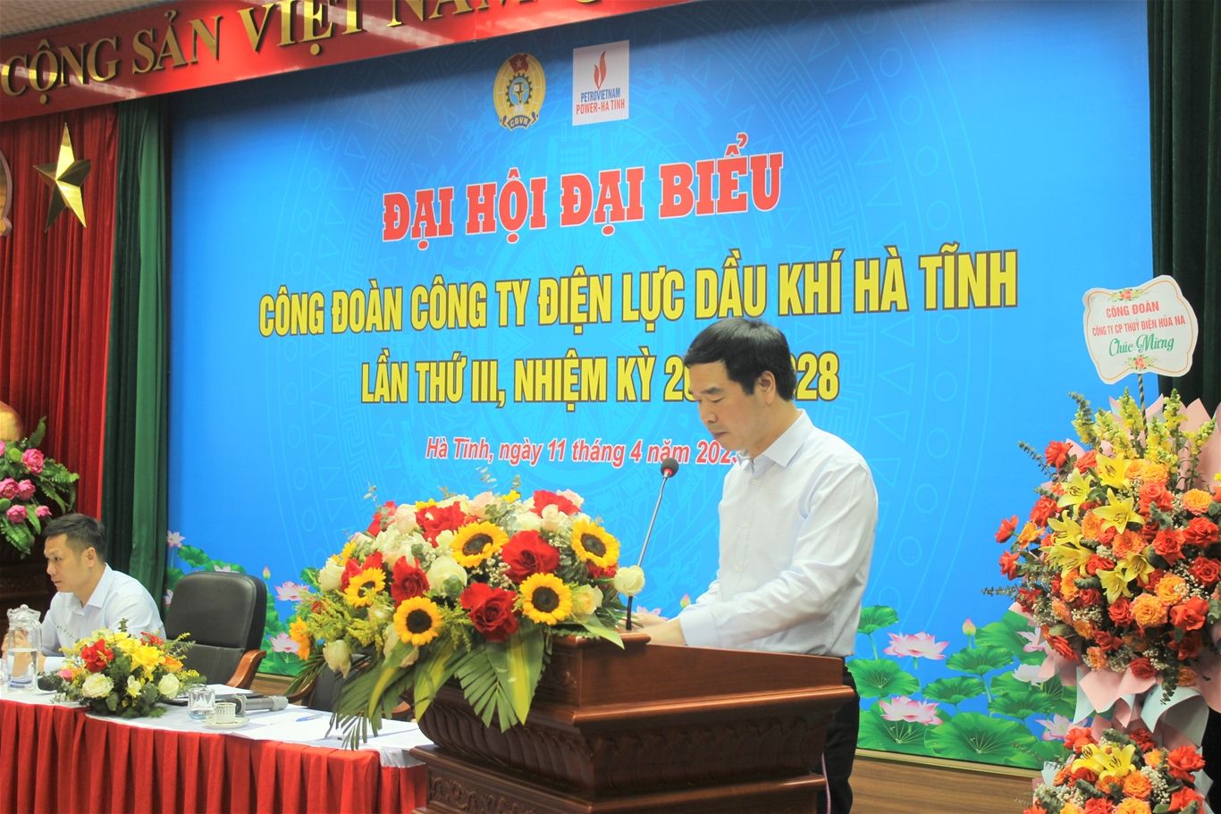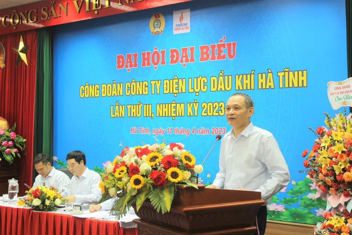 Phát biểu chỉ đạo Đại hội, đồng chí Ngô Hồng Vân, Phó Bí thư thường trực Đảng ủy, Chủ tịch Công đoàn PV Power đã ghi nhận đánh giá cao những kết quả nổi bật trong nhiệm kỳ 2018-2023 của Công đoàn PV Power Ha Tinh như việc chăm lo đời sống, bảo vệ quyền, lợi ích chính đáng của người lao động, đặc biệt trong thời gian đại dịch Covid-19; tổ chức phát động các phong trào thi đua thiết thực trong công tác đại tu tổ máy số 2; sửa chữa, đại tu tổ máy số 1 Nhà máy điện Vũng Áng 1, phong trào thi đua sáng kiến, cải tiến kỹ thuật, phong trào “Xanh-Sạch-Đẹp đảm bảo an toàn vệ sinh lao động”…