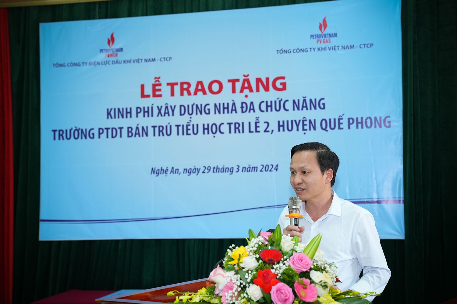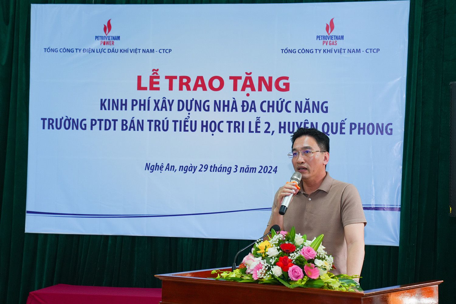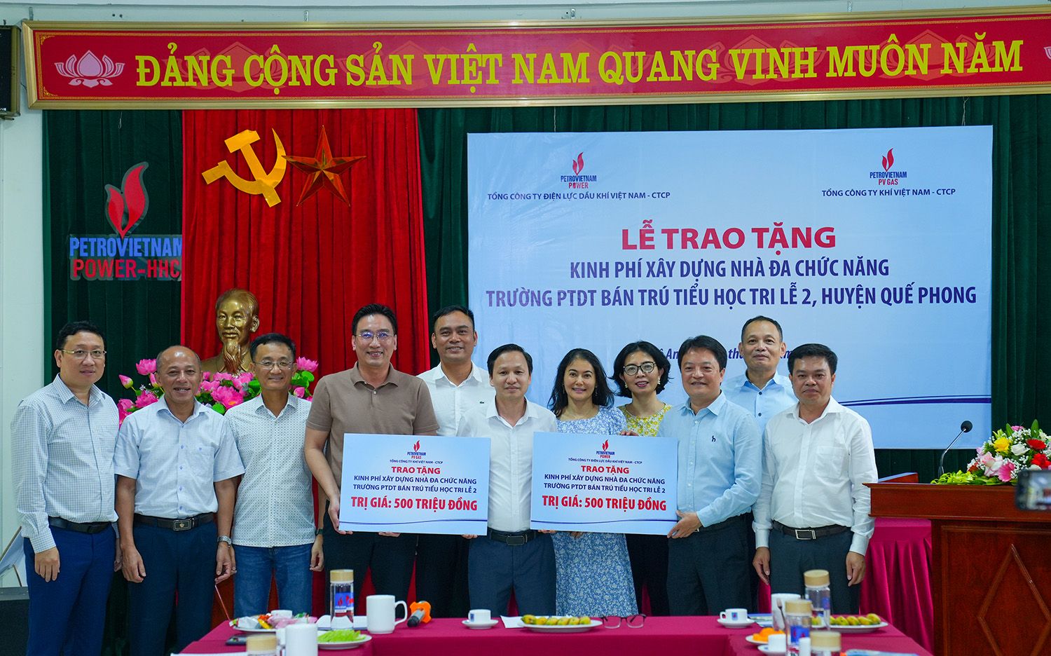 Tại buổi làm việc, đại diện Lãnh đạo PV Power và PVGas cũng đã trao phần chi phí với tổng giá trị 1 tỷ đồng để hỗ trợ huyện Quế Phong xây dựng nhà đa năng cho Trường Phổ thông dân tộc bán trú tiểu học Tri Lễ 2.