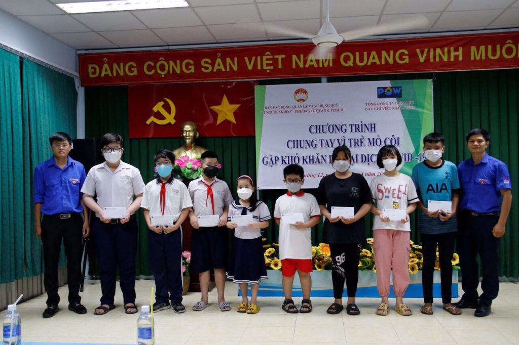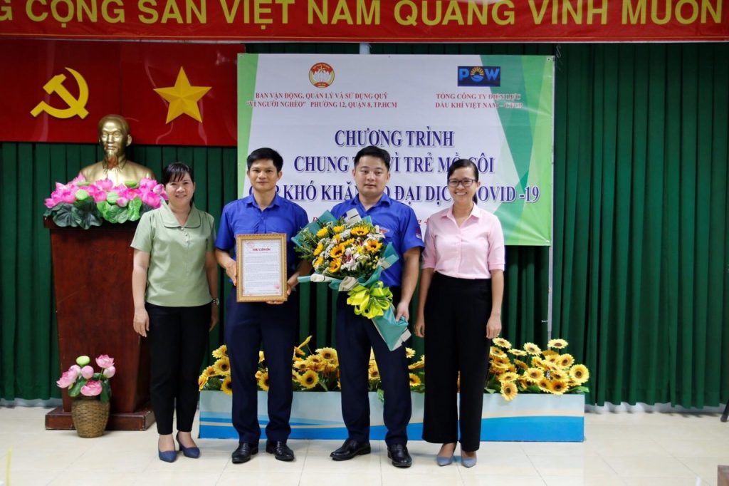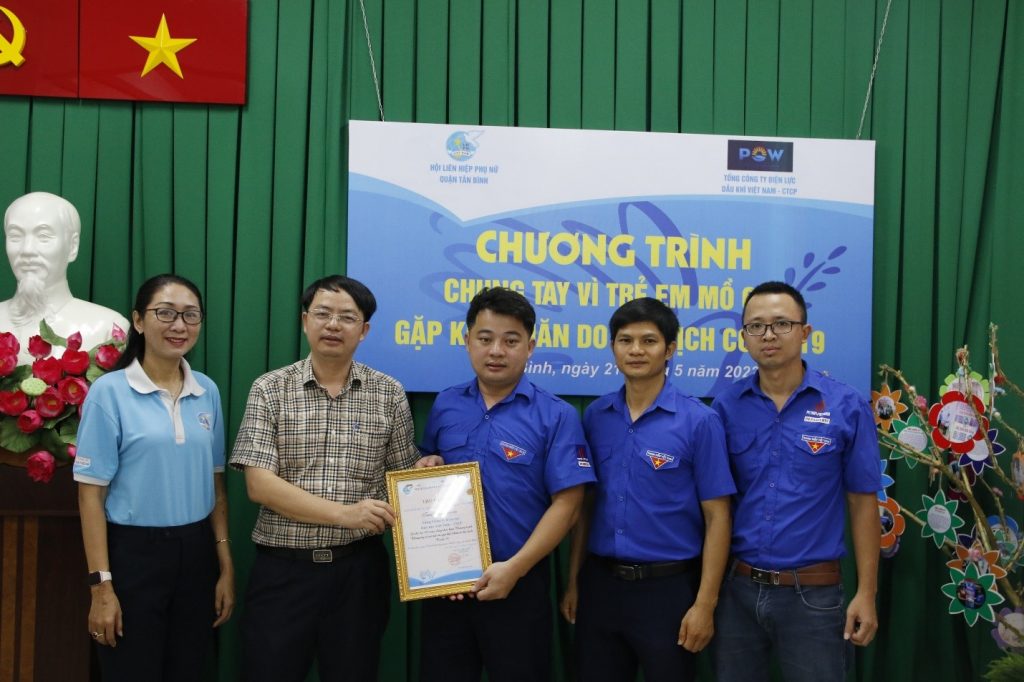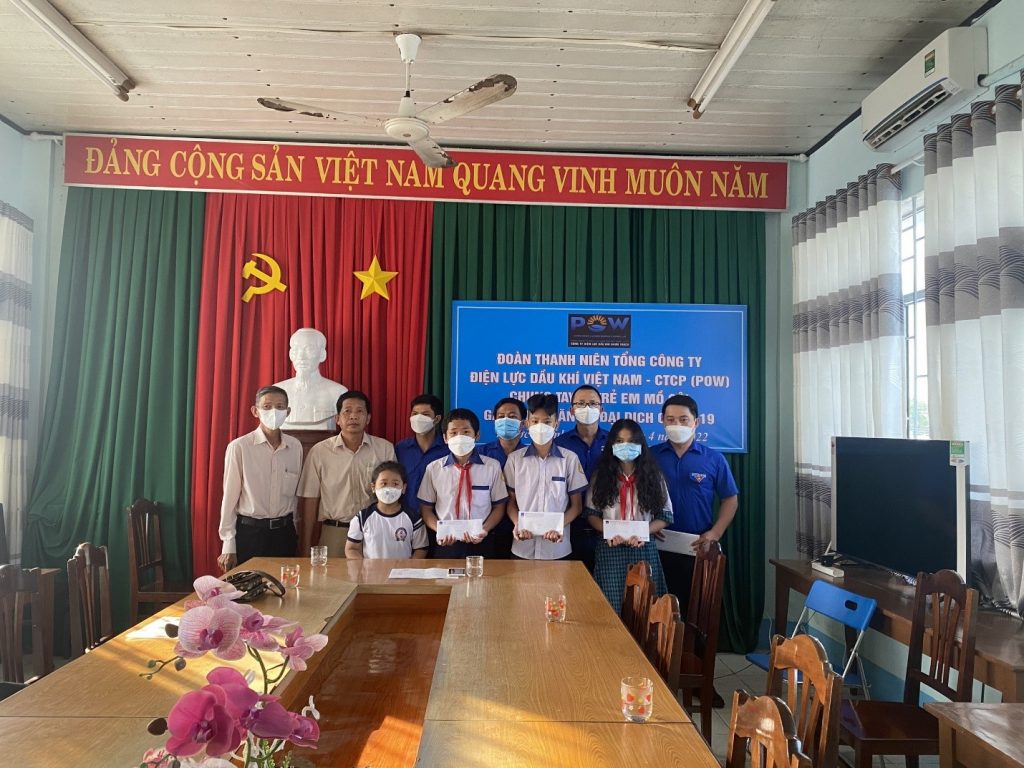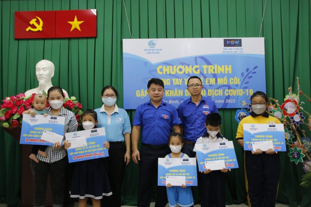 Hưởng ứng tháng Thanh niên 2022 và Kỉ niệm chào mừng 132 năm ngày sinh của Chủ tịch Hồ Chí Minh, ngày 21/5/2022, Đoàn Thanh niên Tổng công ty Điện lực Dầu khí Việt Nam – CTCP (PV Power) đã tổ chức trao các phần quà tới tận tại các em nhỏ mồ côi mất đi người thân vì dịch Covid 19 tại TP. HCM và tỉnh Đồng Nai. Ban chấp hành Đoàn PV Power phối hợp cùng chính quyền địa phương tổ chức trao quà ủng hộ tại Phường 11- Quận 8 TP. Hồ Chí Minh