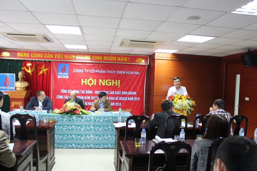 Chiều cùng ngày, Tổng giám đốc PV Power làm việc và chỉ đạo tại Hội nghị tổng kết năm 2017 của Công ty Cổ phần Thủy điện Hủa Na. Năm 2017 có thể coi là một năm thành công đột phá của Công ty, sản lượng điện về đích trước hạn 48 ngày, tổng doanh thu dạt hơn 653 tỷ đồng (bằng 103% kế hoạch năm), lợi nhuận trước thuế đạt 9,45 tỷ đồng (bằng 652% kế hoạch năm). Ngoài ra, Công ty cũng đã hoàn thành việc đại tu lần đầu, niêm yết cổ phiếu lên sàn chứng khoán Upcom. Ghi nhận những thành quả đó, đồng chí Nguyễn Xuân Hòa nhiệt liệt chúc mừng PV Power HHC đã hoàn thành vượt mức các chỉ tiêu SXKD năm 2017. Tổng giám đốc cũng mong muốn trong năm 2018, Công ty phát huy những kết quả đã đạt được, vận hành an toàn, ổn định nhà máy, thực hiện phát điện đạt doanh thu cao nhất trong thị trường điện cạnh tranh.