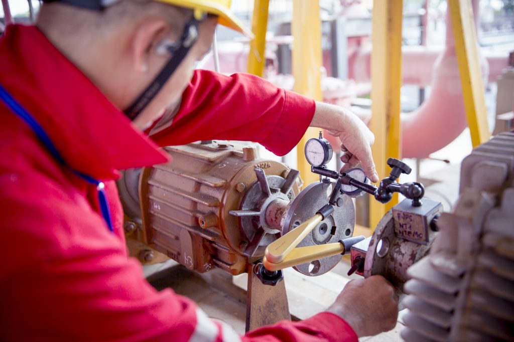 Hai thí sinh trong một đội thi sẽ cùng nhau đo đạc và điều chỉnh motor, đảm bảo thẳng tâm với máy bơm.