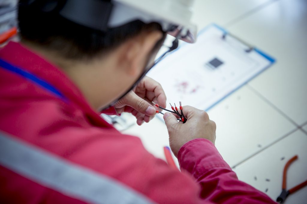 Đây là bài thi đồng đội, mỗi đội có 2 thí sinh tiến hành đấu nối để điều khiển đóng mở van tự động.
