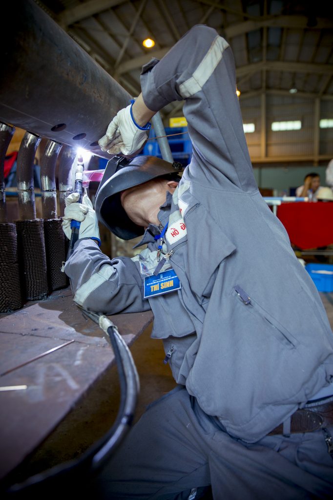 Ban giám khảo công bố các yêu cầu cơ bản của bài thi Hàn ống lò hơi.