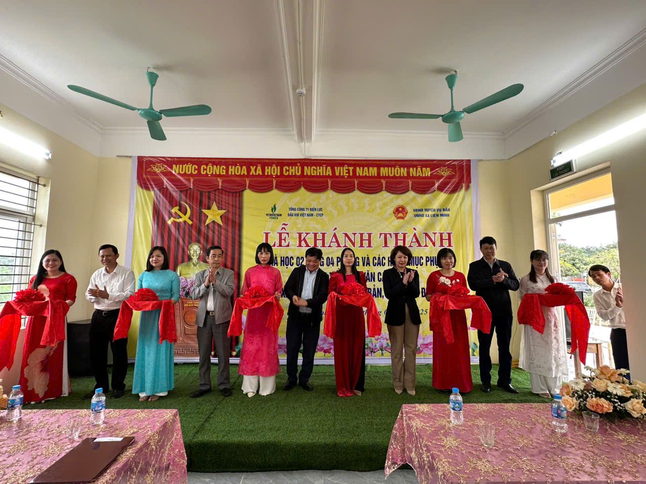 Công trình Trường tiểu học Văn Cao (khu A), xã Liên Minh, huyện Vụ Bản, tỉnh Nam Định được khởi công xây dựng từ ngày 05/7/2024 và hoàn thành đưa vào khai thác sử dụng 13/4/2025 với khối nhà 2 tầng 4 phòng học với tổng diện tích xây dựng hơn 500m2; quy mô 2 tầng với 10 phòng, bao gồm các phòng: hội đồng, phòng chức năng... Công trình có tổng kinh phí gần 5,3 tỷ đồng, trong đó Tổng Công ty Điện lực Dầu khí Việt Nam tài trợ 5 tỷ đồng, còn lại là ngân sách địa phương đối ứng. Sau gần 9 tháng xây dựng, Công trình nhà hiệu bộ Trường tiểu học Văn Cao (khu A), xã Liên Minh đã hoàn thành bàn giao, đưa vào sử dụng đảm bảo đầy đủ các tiêu trí học tập, phòng cháy chữa cháy theo quy định.
