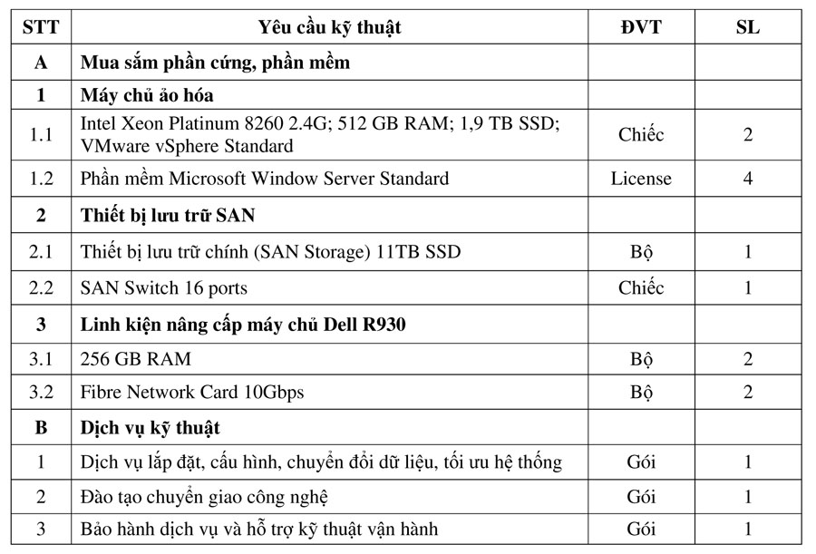 Tổng Công ty Điện lực Dầu khí Việt Nam – CTCP (PV Power) có nhu cầu mua sắm thiết bị máy chủ và lưu trữ cho Trung tâm dữ liệu của Tổng công ty với các nội dung như sau: