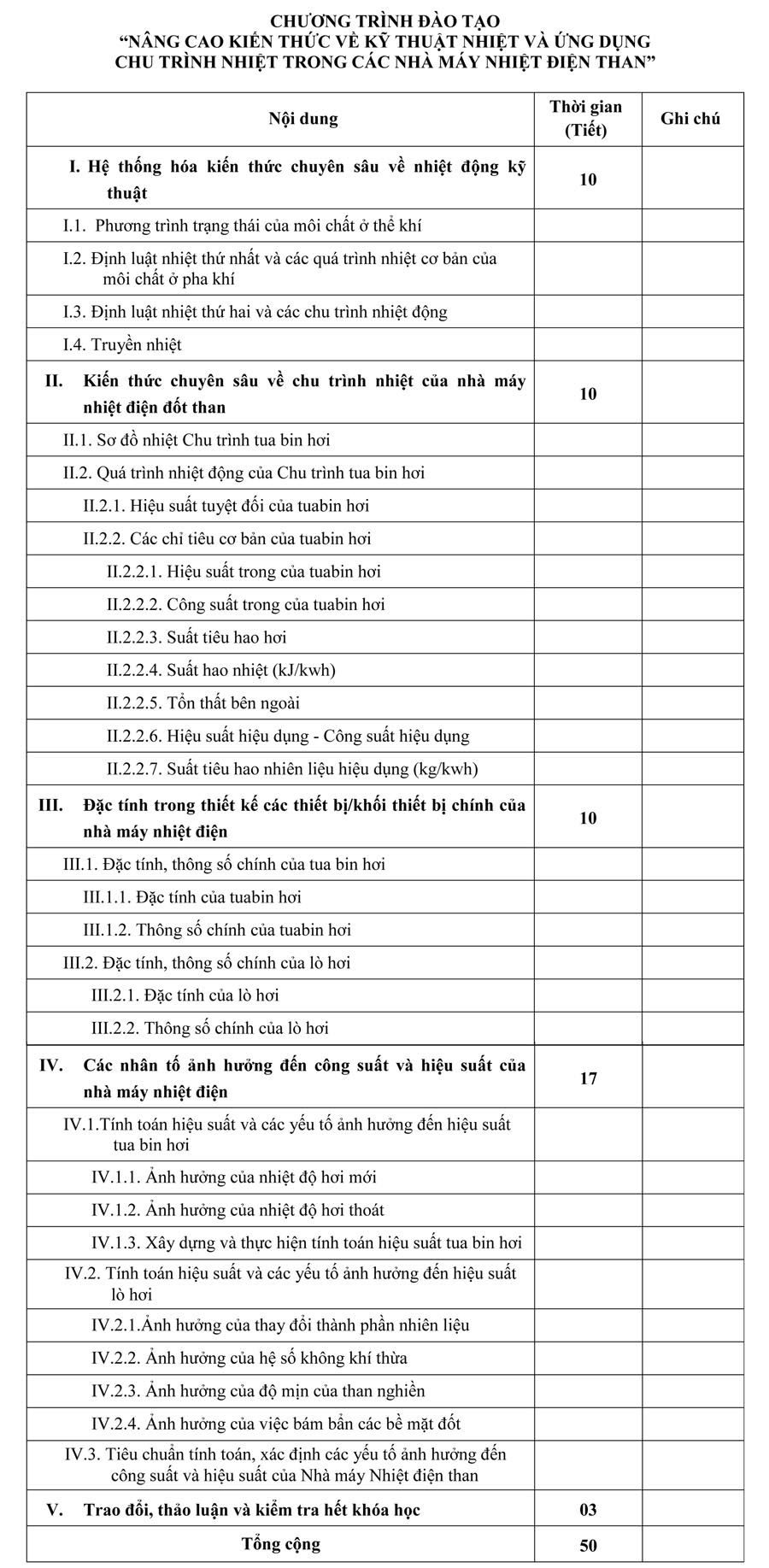 Nhằm giúp cán bộ tham gia khóa học nâng cao kiến thức về kỹ thuật nhiệt và ứng dụng chu trình nhiệt trong nhà máy điện nhiệt điện đốt than. Các cán bộ tham gia khóa học có thể áp dụng kiến thức đã học vào thực tế vận hành hệ thống thiết bị, nâng cao hiệu suất chu trình nhiệt trong sơ đồ công nghệ của nhà máy.