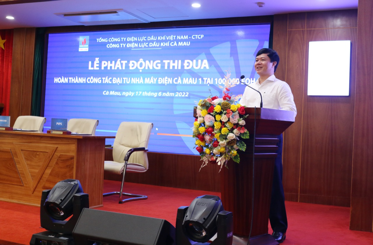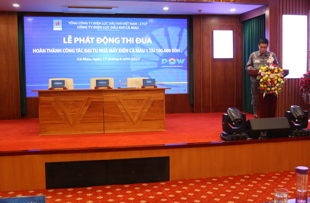 Sáng ngày 17/6/2022, Công ty Điện lực Dầu khí Cà Mau (PV Power Ca Mau) đã tổ chức Lễ phát động phong trào thi đua hoàn thành các hạng mục công trình đại tu Nhà máy điện Cà Mau 1 tại 100.000EOH, với phương châm: “Đoàn kết - Kỷ cương - Sáng tạo - Hiệu quả - An toàn” .