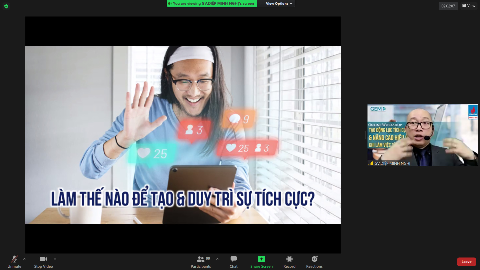 Sáng ngày 21/10/2021 PV Power Ca Mau phối hợp với Học viện Quản lý GEM, Thành phố Hồ Chí Minh khai giảng trực tuyến khóa học “Tạo động lực tích cực và nâng cao hiệu quả khi làm việc từ xa” cho 110 cán bộ, người lao động tham dự.