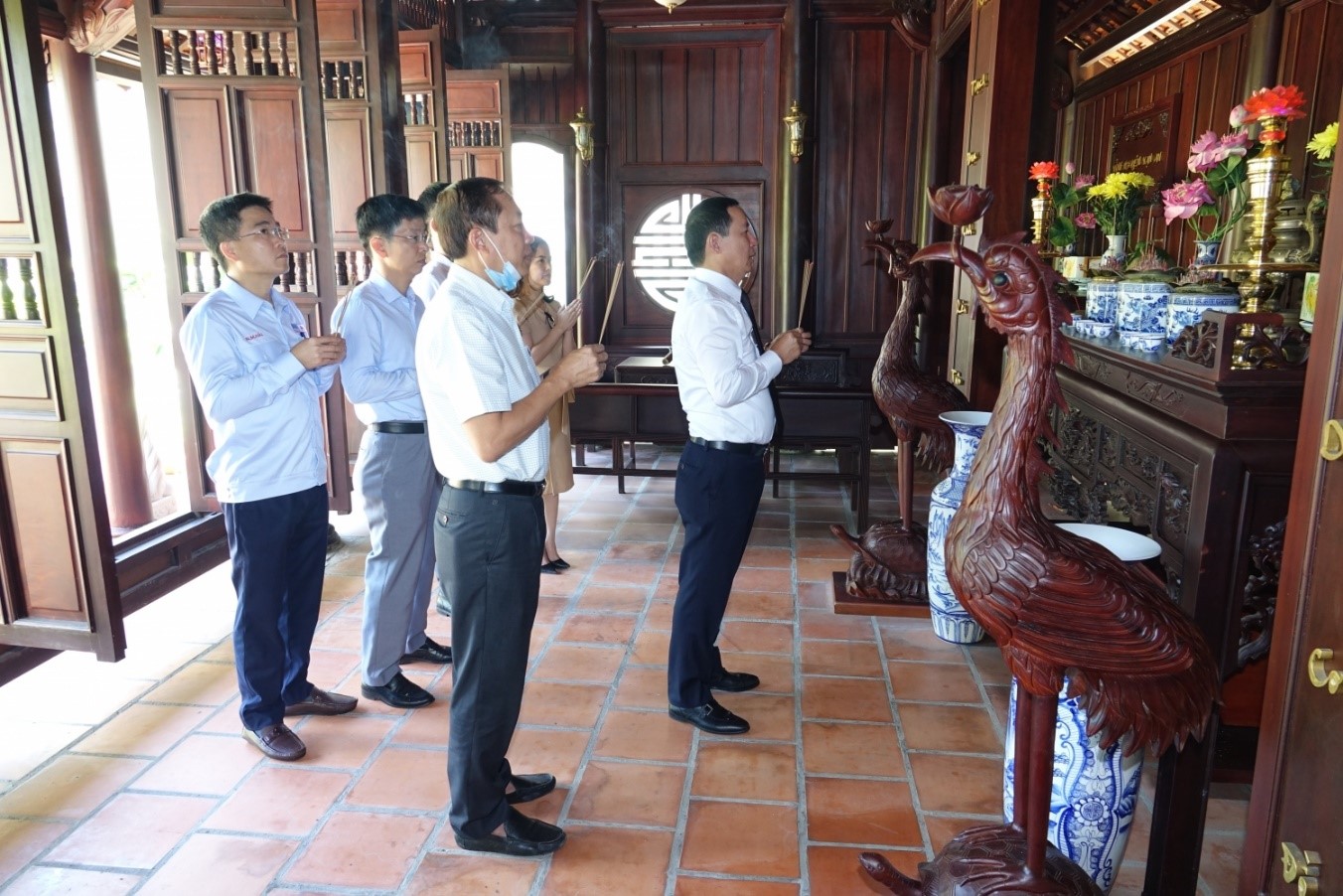 Đại biểu dâng hương tại Đền thờ Bác trong khuôn viên Nhà máy điện Nhơn Trạch 2 |