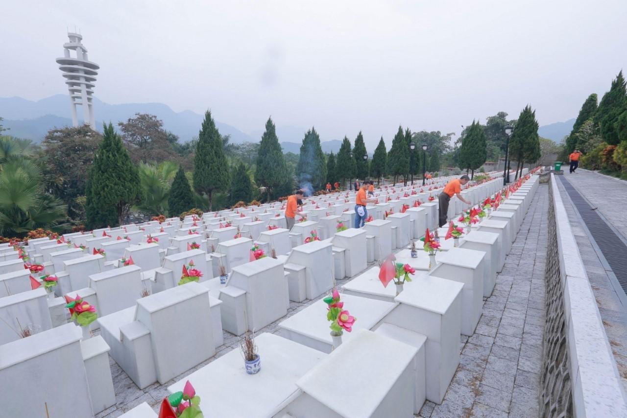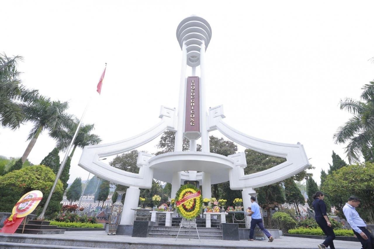 Địa điểm dừng chân đầu tiên của đoàn công tác tại Nghĩa trang liệt sĩ Quốc gia Vị Xuyên[/caption]
