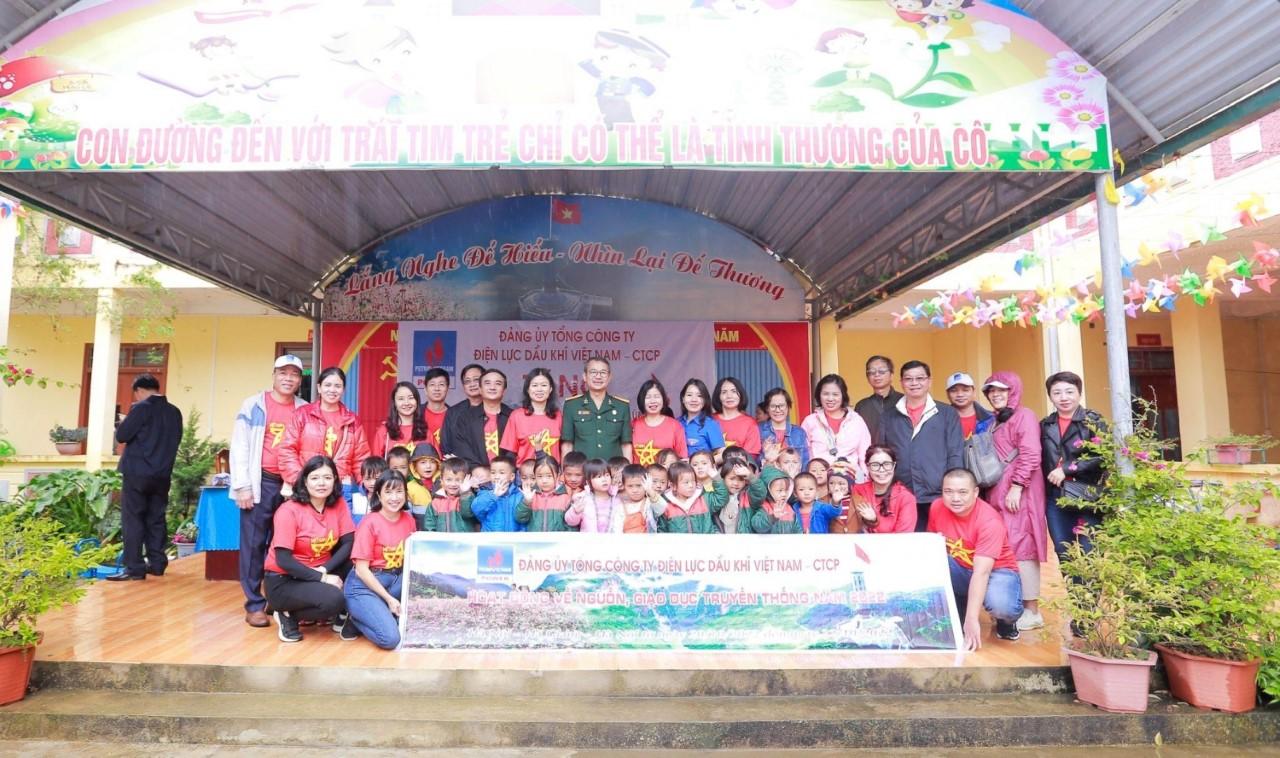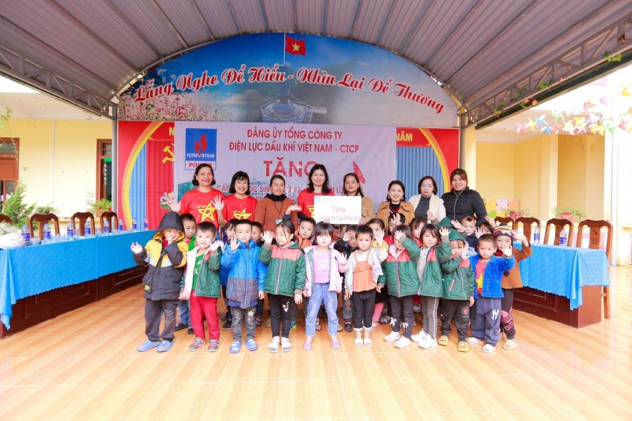 Sau nghi lễ Chào cờ, đoàn công tác di chuyển đến trường Mầm non xã Lũng Cú để trao quà cho các em học sinh. Nhằm hỗ trợ các em học sinh tại trường Mầm non xã Lũng Cú có điều kiện sinh hoạt, học tập tốt hơn, Đảng ủy PV Power đã tài trợ các các hiện vật như loa, TV, máy sưởi, bàn ghế và một số phần quà.