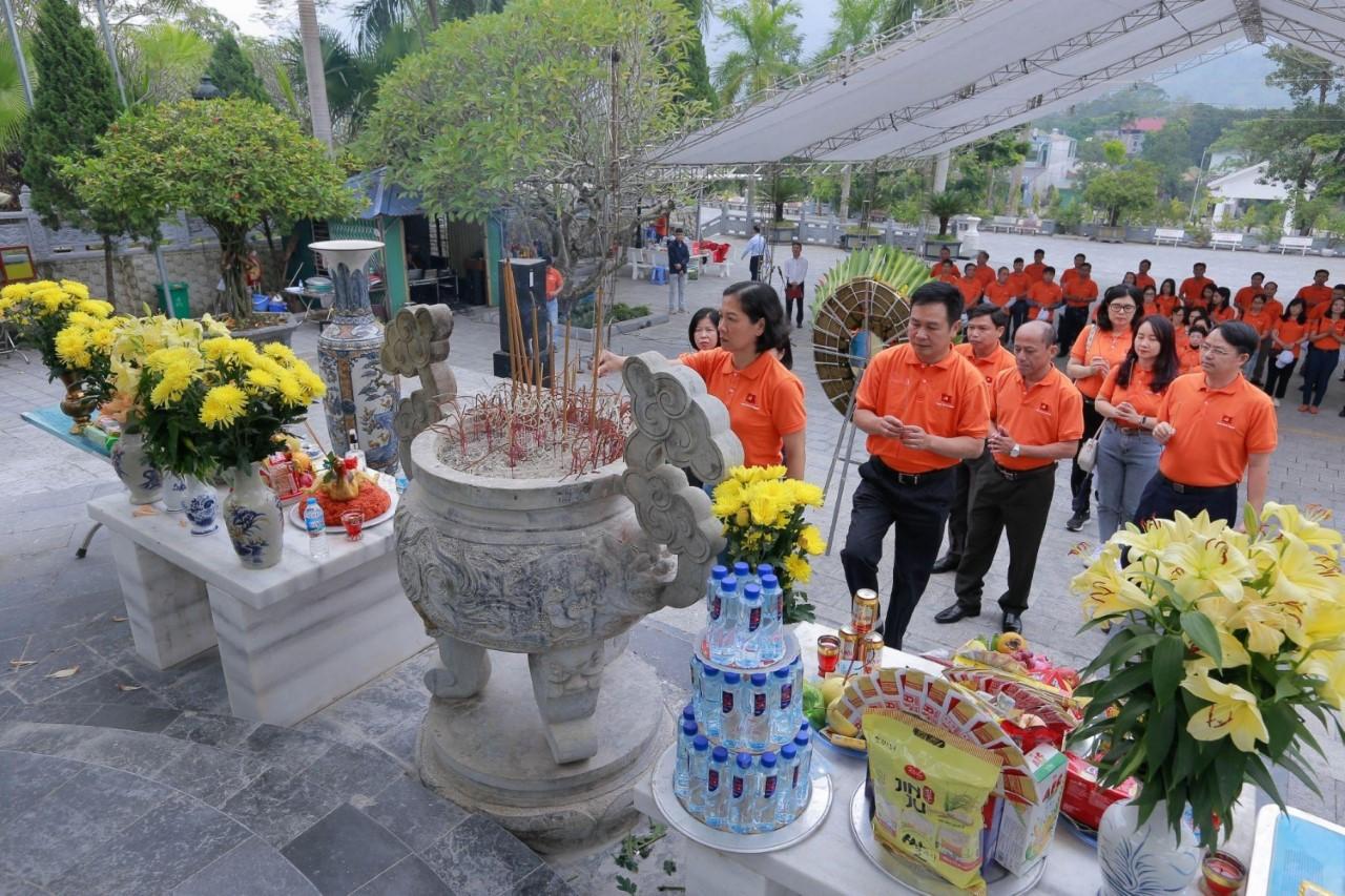 Địa điểm dừng chân đầu tiên của đoàn công tác tại Nghĩa trang Liệt sĩ Quốc gia Vị Xuyên, nơi yên nghỉ của hơn 1.800 cán bộ, chiến sĩ đã hy sinh trong cuộc chiến tranh bảo vệ biên giới phía Bắc của Tổ quốc. Thay mặt Đảng ủy Tổng Công ty, đồng chí Ngô Hồng Vân bày tỏ lòng biết ơn sâu sắc tới các Anh hùng Liệt sĩ, những người đã hi sinh xương máu, hi sinh tuổi trẻ cho công cuộc xây dựng và bảo vệ nền độc lập của Tổ quốc.