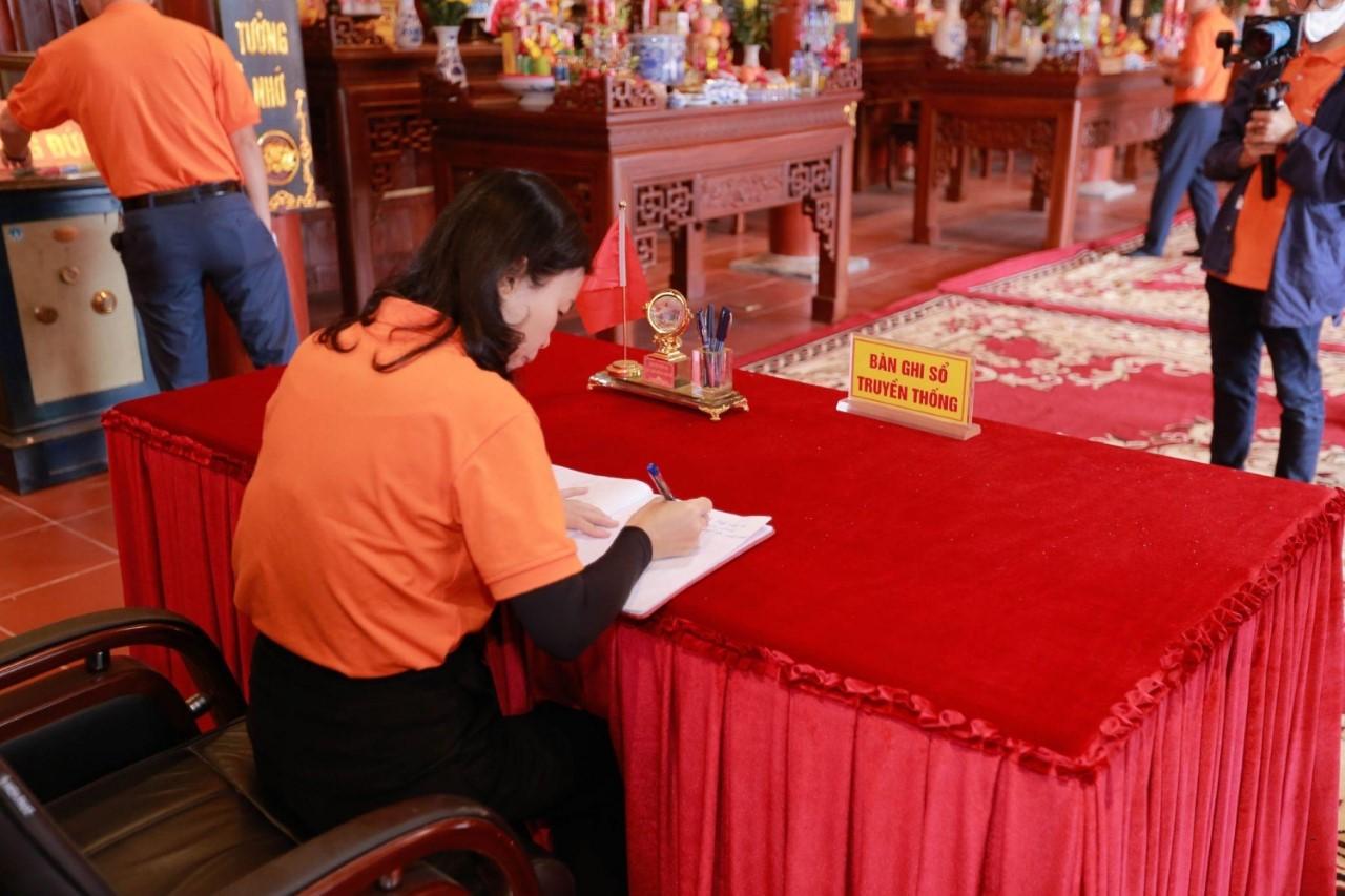 Đồng chí Ngô Hồng Vân ghi sổ lưu niệm tại Nhà tưởng niệm các Anh hùng liệt sĩ[/caption]