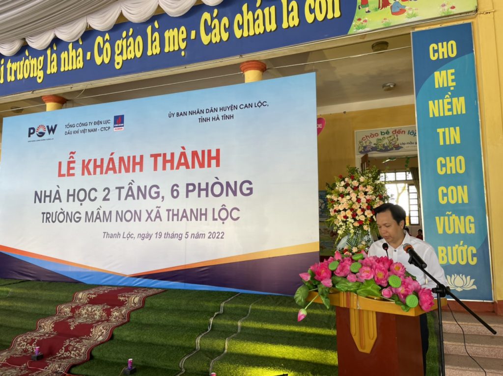 Ngày 19/5/2022, PV Power cùng chính quyền đại phương xã Can Lộc, tỉnh Hà Tĩnh đã tổ chức khánh thành công trình nhà học 2 tầng, trường Mầm non Thanh Lộc.