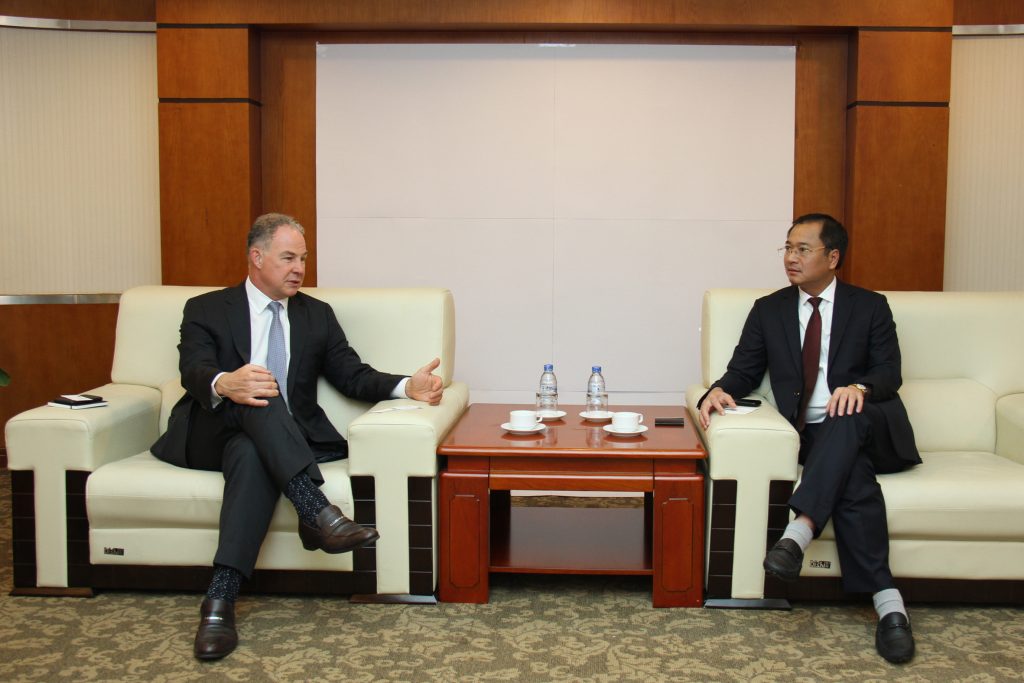 Ông Nguyễn Mạnh Tưởng – Phó Tổng Giám đốc PV Power (bên phải) tioeeps và làm việc với ông Scott Kicker Tổng giám đốc điều hành Gen X