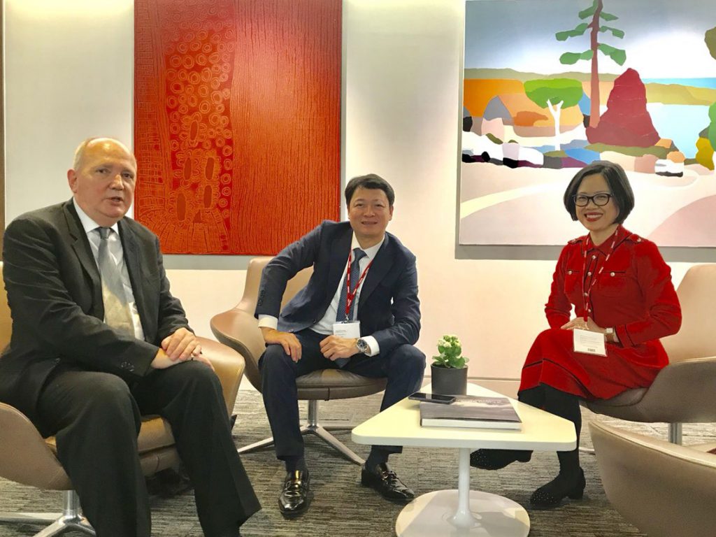 Ông Nguyễn Duy Giang và Bà Nguyễn Thị Ngọc Bích làm việc với các đối tác./.