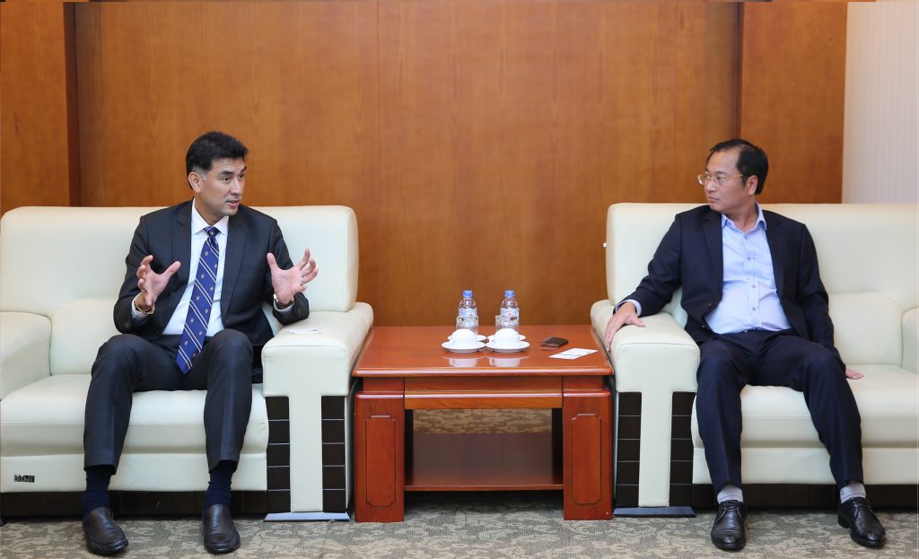 Ông Nguyễn Mạnh Tưởng – Phó TGĐ PV Power (bên phải) tiếp và làm việc với ông Ramesh Singaram – Tổng giám đốc Khối Điện khí của GE Power - khu vực Châu Á Thái Bình Dương