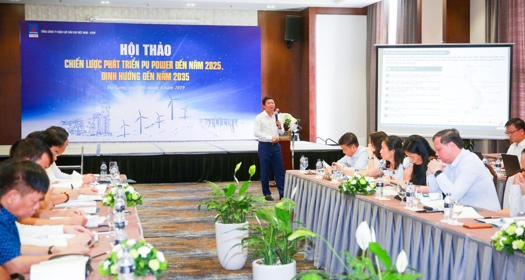 Tại hội thảo, ông Nguyễn Duy Giang, Phó Tổng giám đốc Tổng công ty đã trình bày "Báo cáo chiến lược phát triển của PV Power đến năm 2025, định hướng đến năm 2035".