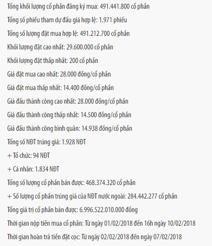 Phiên IPO đã kết thúc với kết quả đấu giá như sau: