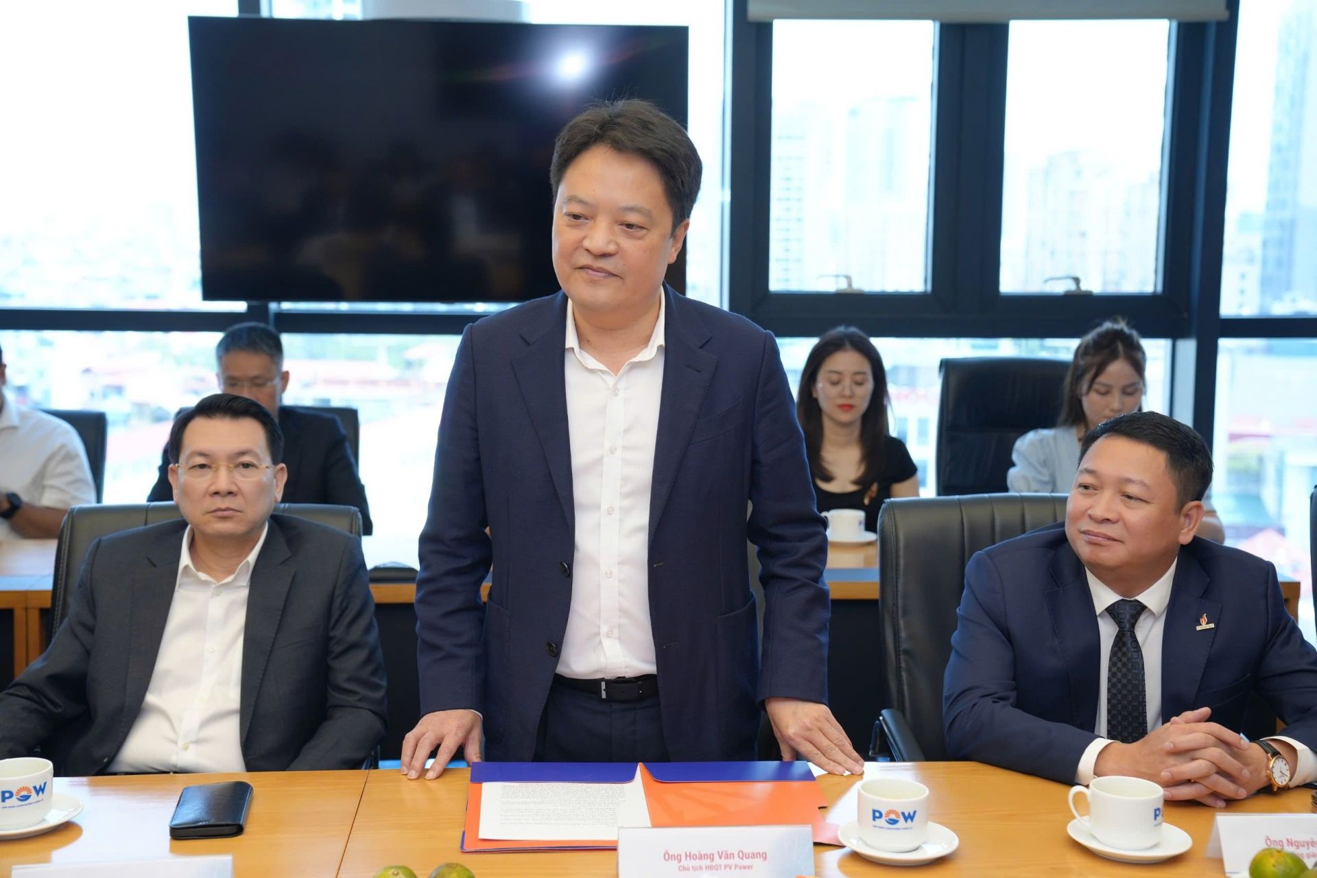 Về phía PV Power có ông Hoàng Văn Quang - Chủ tịch Hội đồng Quản trị Tổng công ty, các Phó Tổng giám đốc: Nguyễn Duy Giang, Trương Việt Phương cùng đại diện đến từ các Ban chuyên môn Tổng công ty.