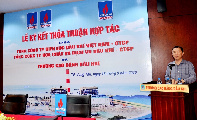 Phát biểu tại Lễ ký kết, ông Vũ Duy Hảo - Chủ tịch Hội đồng trường PVMTC đã thay mặt CBCNV và HSSV nhà trường gửi lời chúc sức khỏe đến lãnh đạo Tập đoàn và lãnh đạo các đơn vị. Ông Vũ Duy Hảo khẳng định: Với mục tiêu phát huy hết thế mạnh của từng đơn vị, phát triển đào tạo nguồn nhân lực tốt cho Tập đoàn, trong đó có trách nhiệm của các đơn vị. Đặc biệt, nếu đào tạo gắn với doanh nghiệp thì càng nâng cao chất lượng đào tạo nguồn nhân lực để cung cấp cho xã hội cũng như trong ngành. Ý thức được vai trò đào tạo nguồn nhân lực cho ngành Dầu khí, PVMTC mong muốn các đơn vị tham gia ký kết hợp đồng, thỏa thuận giữ vững tinh thần hợp tác, sẵn sàng vượt qua mọi thử thách để cùng nhau phát triền bền vững. Lãnh đạo các đơn vị trân trọng cảm ơn sự lãnh đạo, chỉ đạo sát sao, hỗ trợ, tạo điều kiện của Tập đoàn tại quá trình hợp tác được ký kết nói riêng và trong sự phát triển các đơn vị thành viên của Tập đoàn trong nhiều năm qua nói chung.