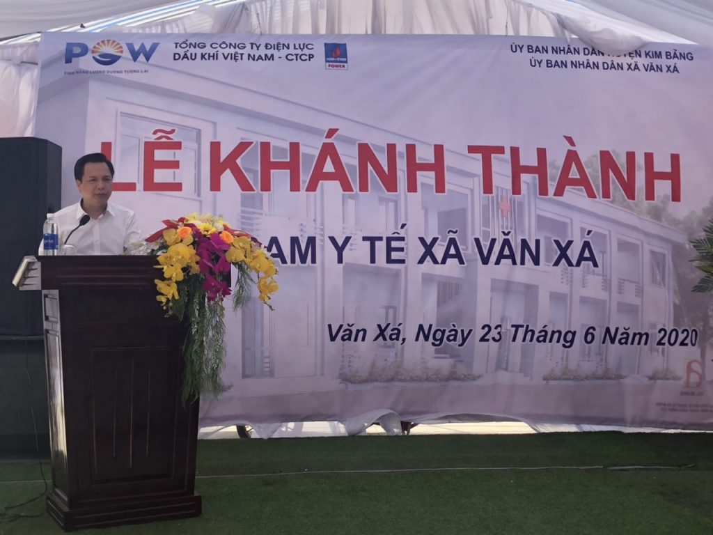 Phát biểu tại buổi lễ ông Phan Ngọc Hiền – Phó Tổng giám đốc Tổng công ty Điện lực Dầu khí Việt Nam cho biết:: “Là một doanh nghiệp kinh doanh điện năng, đầu tư phát triển các dự án điện đảm bảo An ninh năng lượng Quốc gia, bên cạnh những đóng góp chung vào sự phát triển kinh tế đất nước, PV Power với sự quan tâm đặc biệt đối với lĩnh vực y tế cũng như sự nghiệp bảo vệ, chăm sóc sức khỏe toàn dân, đảm bảo An sinh xã hội trên cả nước. Hàng năm, PV Power dành nhiều kinh phí để thực hiện công tác ASXH, đầu tư chủ yếu vào lĩnh vực y tế và giáo dục. Trong đó, PV Power đặc biệt quan tâm đến những địa phương tỉnh còn khó khăn như vùng sâu, vùng xa còn nhiều hộ nghèo. Công trình Trạm Y tế xã Văn Xá là tình cảm và tấm lòng của hơn 2.200 cán bộ, công nhân viên người lao động Tổng công ty Điện lực Dầu khí Việt Nam dành cho địa phương. Việc làm này không chỉ thể hiện đạo lý uống nước nhớ nguồn mà còn thể hiện sự quan tâm phát triển nâng cao đời sống cho nhân dân địa phương và nâng cao sức khỏe cộng đồng trên toàn xã hội. PV Power tin tưởng rằng với công trình này, người dân xã Văn Xá huyện Kim Bảng, tỉnh Hà Nam nói chung và đặc biệt các gia đình có công với cách mạng, các thương bệnh binh, các gia đình chính sách có hoàn cảnh khó khăn được chăm sóc sức khỏe tốt hơn, kịp thời hơn và có cuộc sống ấm no.