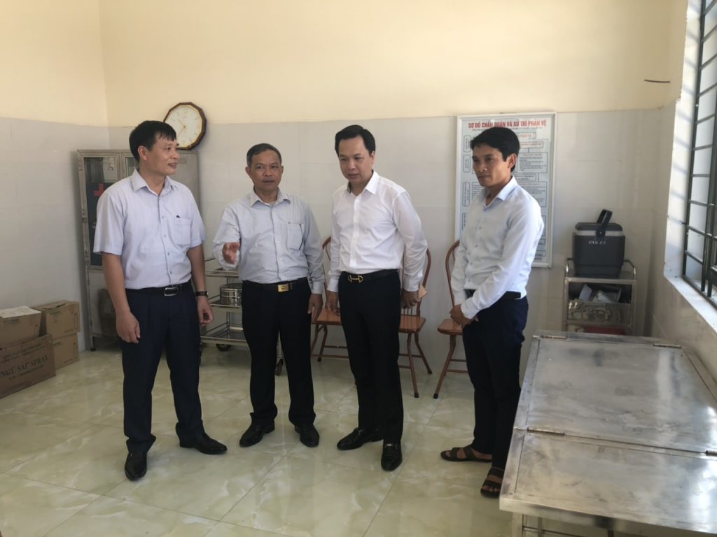 Lãnh đạo PV Power và lãnh đạo địa phương tham quan các phòng chức năng của Trạm Y tế xã Văn Xá vừa mới khánh thành